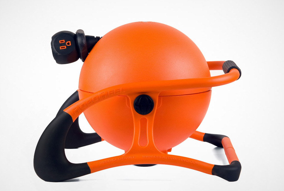 Available in an indoor and outdoor version, the Roboreel automatically stores extension cords or garden hoses using a motorized retraction system. It’s smooth motor is designed to reduce cord-whipping, twisting, and tangles.